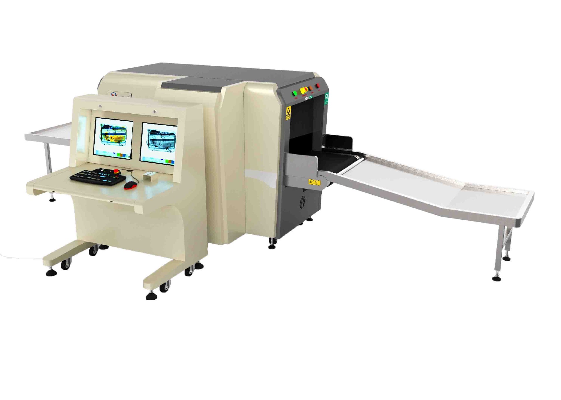 恒通思维6550D(双源双视角安检机)采用双视角检查系统,利用双能量探测器及数字图像处理系统,从垂直和水平两个方向对物品进行检测,无需考虑被检物品的摆放位置获得清晰鲜明的图像。相比传统X射线检查设备,能在检查效率、占地空间(增加检查效率相当于增加了站内空间利用率)、减少误报、漏报及辅助自动识别上更具优势,更加适用于铁路、车站、轨道交通等这样大流量、包裹携带比率高的场所。
